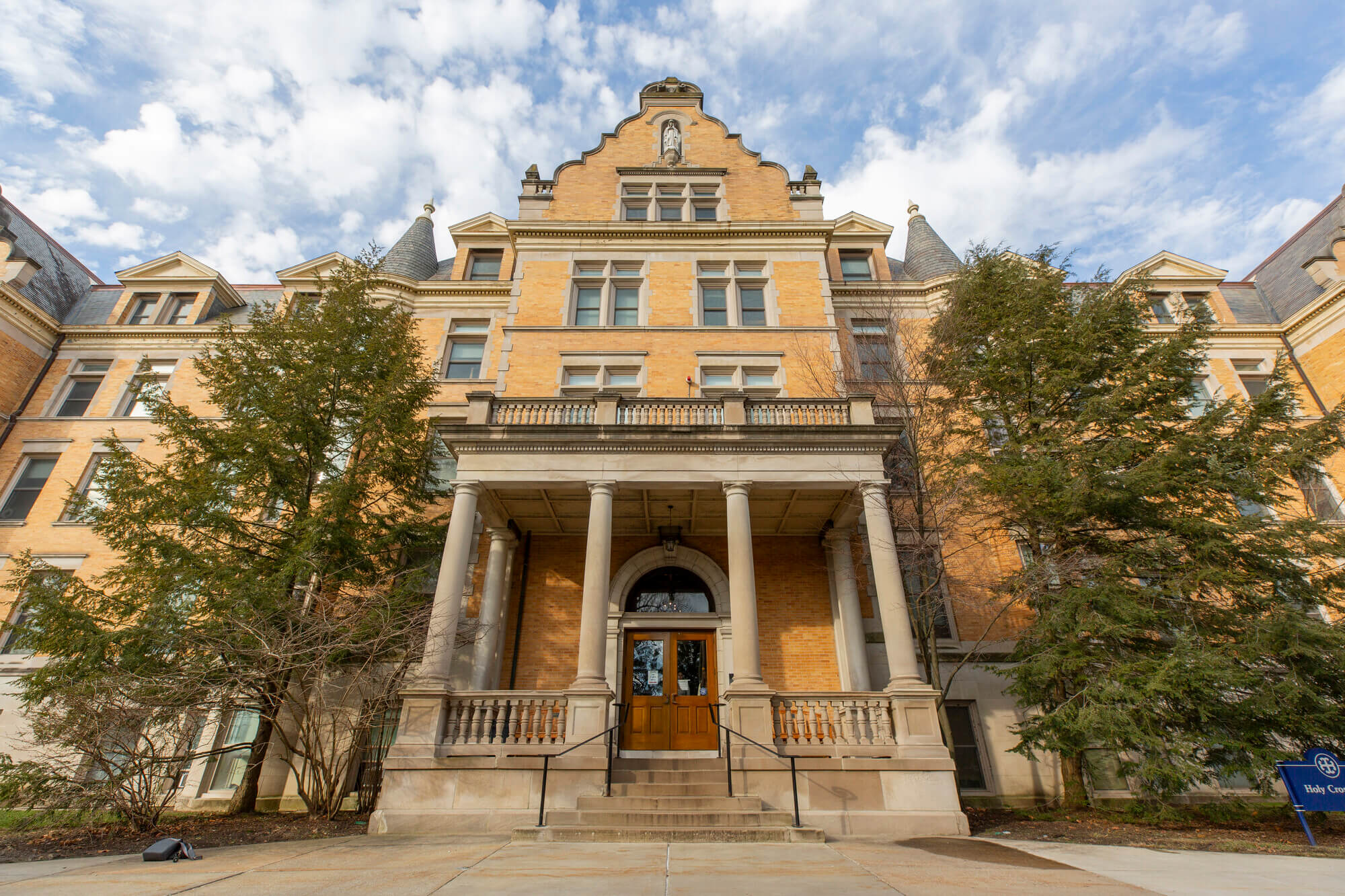 Holy Cross Hall is full of history, character, and tradition. The foyer walls that uplift the tall ceilings of Holy Cross are lined with photos of former residents as it is tradition to take a hall photo each year. Each room, a little different than the next, feels spacious and unique with large windows to let in light. Some rooms have sinks and some have private baths while others share bathrooms on the floor.