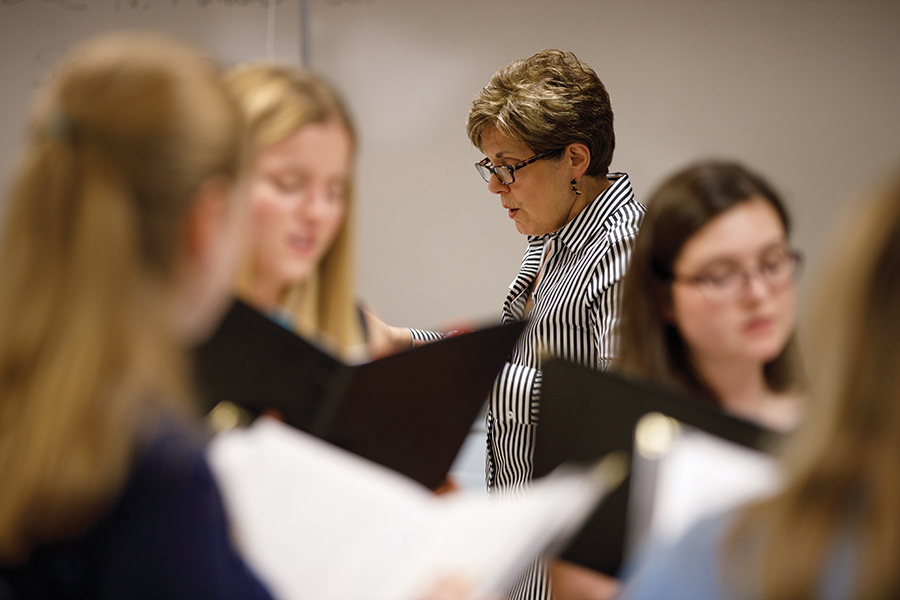 Menk, who joined the College in 1984, is also the music department chair. She has used the annual stipend provided by the Leighton chair to help pay for professional recordings of Saint Mary’s College Women’s Choir (now Belles Voix) which have been sold worldwide and are on streaming services. She has also used the funding to commission new choral works for women’s voices for the College’s choirs, to help support Saint Mary’s students in several Carnegie Hall concerts under Menk’s direction, and to provide extra experience to choir students on their biennial tours.