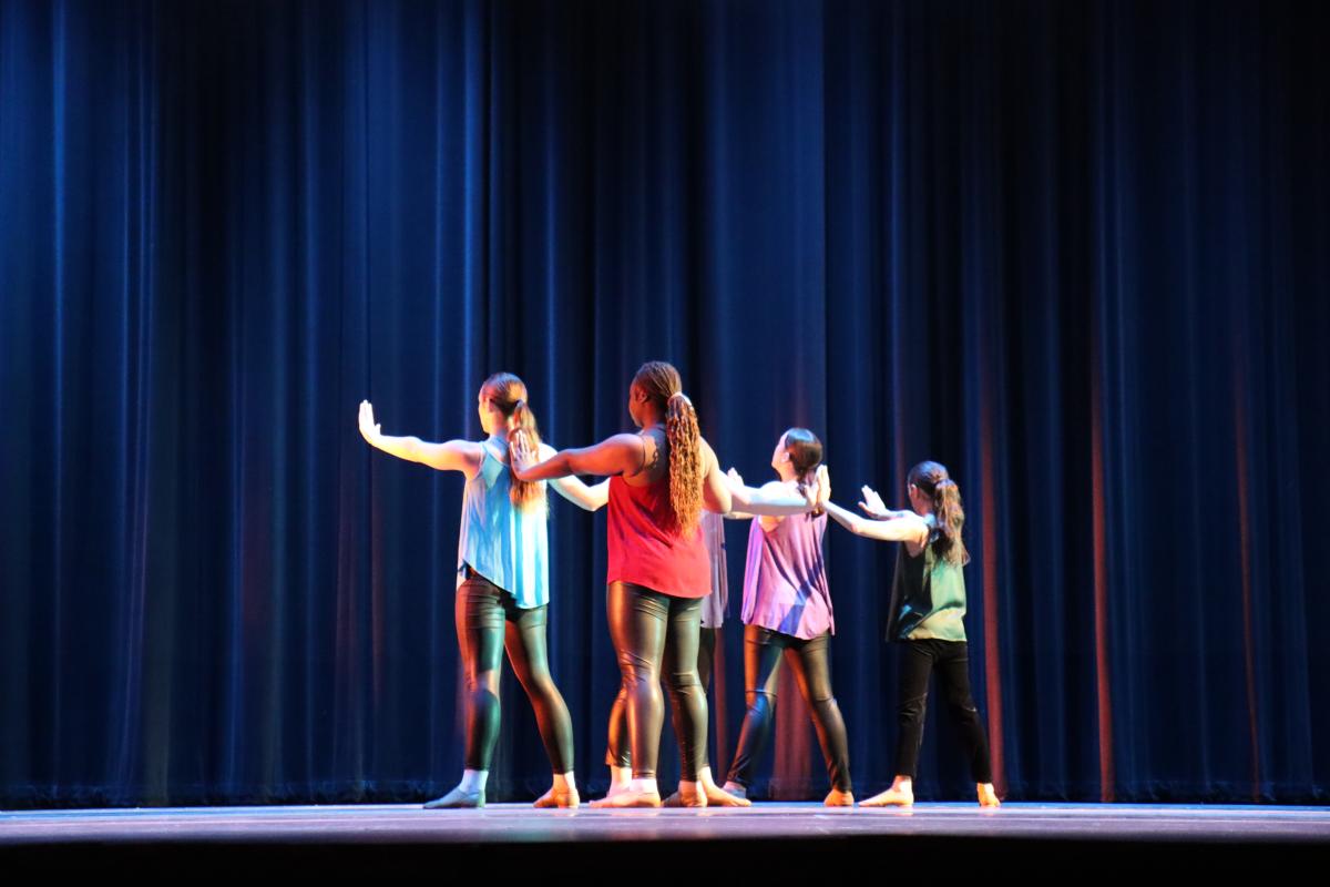 Michele Foust, a professor for the Program in Dance, provided student dancers the opportunity to showcase their own choreography in a piece called “Wholeheartedly.” The work ties together the theme of the show, which explores what it means to do something with complete authenticity. Dancers were charged with reflecting on what it means to believe or do something wholeheartedly, and these personal reflections were manifested into short movement phrases. From there, small groups formed and each shared their movement, found a common theme, and then worked together to make a section of the dance. Foust’s goal was to “allow the dancers to not only have the chance to collaborate, but also to learn something truly meaningful about their fellow company members.” The dancers’ inspirations ranged from connection and friendship to uplifting others and finding belonging.