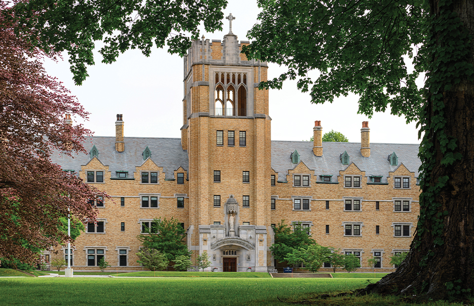 This year, Le Mans Hall, the Tudor gothic centerpiece of Saint Mary’s College, turns 100 years old. Le Mans, often called “The Castle” by alumnae, has been home to thousands of women over the past century at a pivotal point in their lives. Time may separate them, but their experiences of spending four formative years there connects them across generations. Deep within the College archives are myriad stories that keep this brick behemoth pulsing with life.